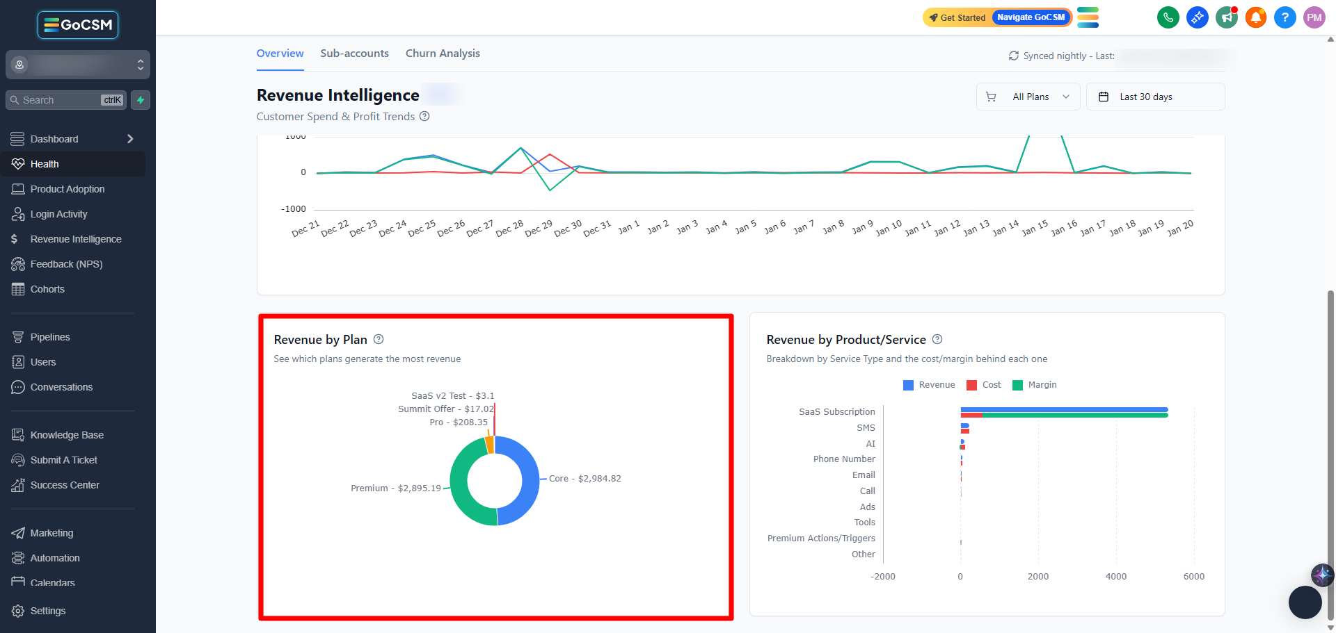 GoCSM groups revenue based on the subscription plans your customers are on.